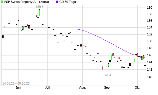 Mit dem Rücksetzer auf 143,80 EUR hat die PSP Swiss Property-Aktie am 08.10.2025 die 50-Tage-Linie nach unten gekreuzt.