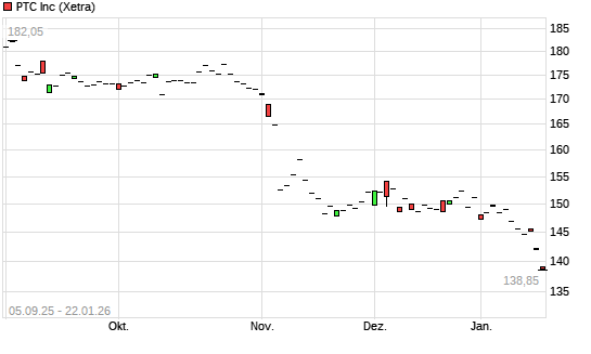 Mit dem Rücksetzer auf 136,95 EUR hat die PTC-Aktie (ISIN US69370C1009) am 21.01.2026 ein neues 6-Monats-Tief erreicht und damit den Kurs vom 20.01.2026 eingestellt.