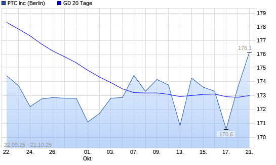 Mit dem Anstieg auf 173,25 EUR hat die PTC-Aktie am 20.10.2025 die 20-Tage-Linie nach oben gekreuzt.