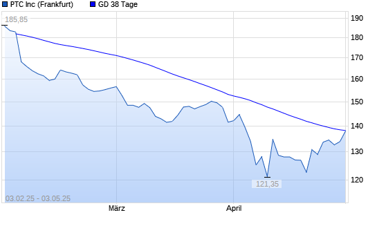 Mit dem Anstieg auf 137,95 EUR hat die PTC-Aktie am 02.05.2025 die 38-Tage-Linie nach oben gekreuzt.