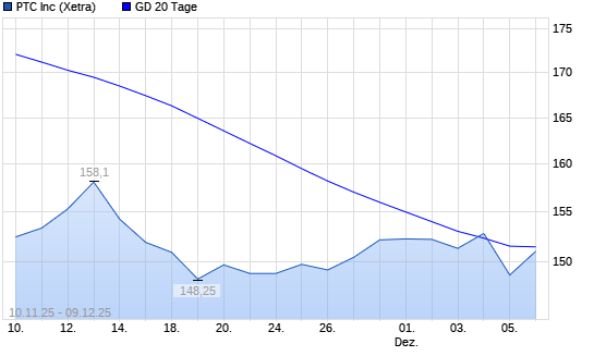 Mit dem Rücksetzer auf 148,25 EUR hat die PTC-Aktie am 08.12.2025 die 20-Tage-Linie nach unten gekreuzt.