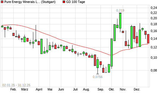 Mit dem Rücksetzer auf 0,13 EUR hat die PURE ENERGY MINERALS-Aktie am 30.12.2025 die 100-Tage-Linie nach unten gekreuzt.