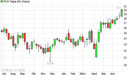 Mit dem Anstieg auf 19,58 EUR hat die PVA TePla-Aktie (ISIN DE0007461006) am 26.06.2025 ein neues 12-Monats-Hoch erreicht und damit den Kurs vom 24.06.2025 eingestellt.
