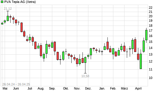 Mit dem Anstieg auf 17,34 EUR hat die PVA TePla-Aktie (ISIN DE0007461006) am 25.04.2025 ein neues 6-Monats-Hoch erreicht und damit den Kurs vom 24.04.2025 eingestellt.