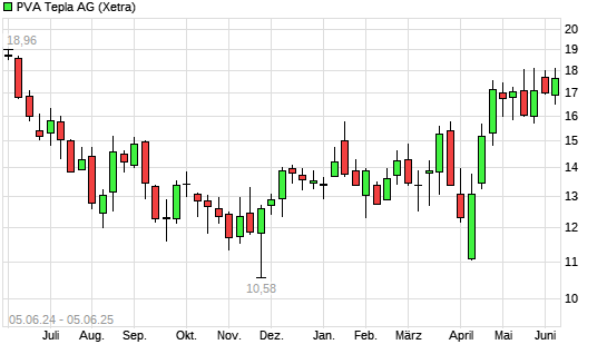 Mit dem Anstieg auf 17,81 EUR hat die PVA TePla-Aktie (ISIN DE0007461006) am 04.06.2025 ein neues 6-Monats-Hoch erreicht und damit den Kurs vom 14.05.2025 eingestellt.
