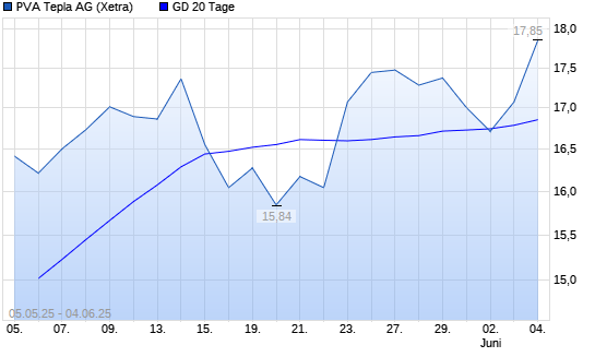 Mit dem Rücksetzer auf 16,63 EUR hat die PVA TePla-Aktie am 03.06.2025 die 20-Tage-Linie nach unten gekreuzt.