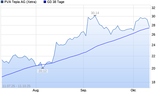 Mit dem Rücksetzer auf 27,22 EUR hat die PVA TePla-Aktie am 10.10.2025 die 38-Tage-Linie nach unten gekreuzt.