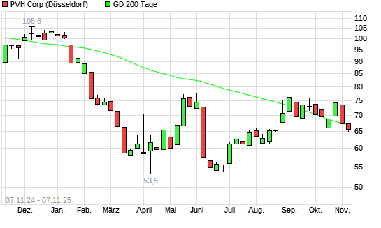 Mit dem Anstieg auf 67,18 EUR hat die PVH-Aktie am 06.11.2025 die 200-Tage-Linie nach oben gekreuzt.