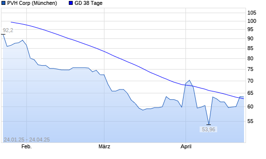 Mit dem Anstieg auf 63,18 EUR hat die PVH-Aktie am 23.04.2025 die 38-Tage-Linie nach oben gekreuzt.