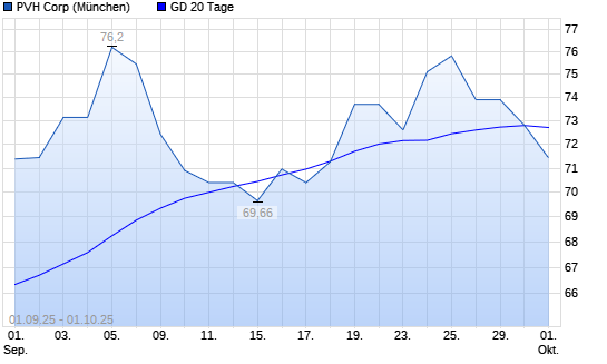 Mit dem Rücksetzer auf 71,80 EUR hat die PVH-Aktie am 30.09.2025 die 20-Tage-Linie nach unten gekreuzt.