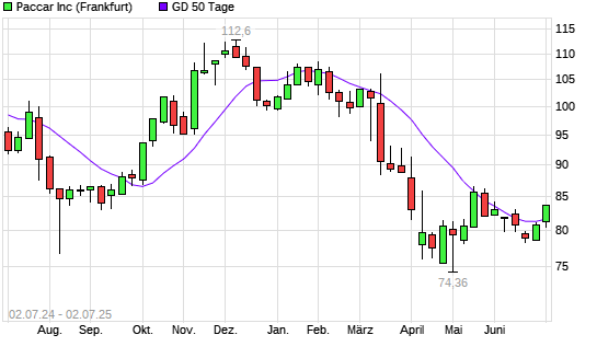 Mit dem Anstieg auf 83,32 EUR hat die Paccar-Aktie am 01.07.2025 die 50-Tage-Linie nach oben gekreuzt.