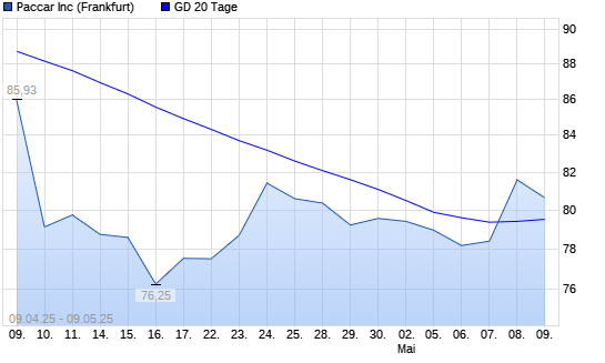 Mit dem Anstieg auf 81,60 EUR hat die Paccar-Aktie am 08.05.2025 die 20-Tage-Linie nach oben gekreuzt.Die Paccar-Aktie befindet sich seit dem 11.03.2025 im langfristigen Abwärtstrend und hat ...weiterlesen