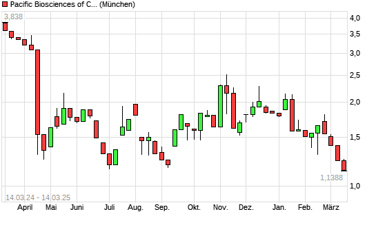 Mit dem Rücksetzer auf 1,10 EUR hat die Pacific Biosciences of California-Aktie (ISIN US69404D1081) am 13.03.2025 ein neues 10-Jahres-Tief erreicht und damit den Kurs vom 02.09.2024 eingestellt.
