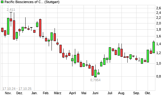 Mit dem Anstieg auf 1,48 EUR hat die Pacific Biosciences of California-Aktie (ISIN US69404D1081) am 16.10.2025 ein neues 6-Monats-Hoch erreicht und damit den Kurs vom 15.10.2025 eingestellt.