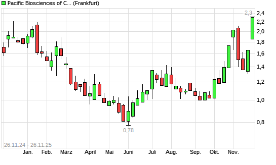 Mit dem Anstieg auf 2,20 EUR hat die Pacific Biosciences of California-Aktie (ISIN US69404D1081) am 25.11.2025 ein neues 6-Monats-Hoch erreicht und damit den Kurs vom 24.11.2025 eingestellt.