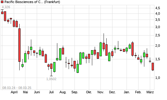 Mit dem Rücksetzer auf 1,18 EUR hat die Pacific Biosciences of California-Aktie (ISIN US69404D1081) am 07.03.2025 ein neues 6-Monats-Tief erreicht und damit den Kurs vom 06.03.2025 eingestellt.