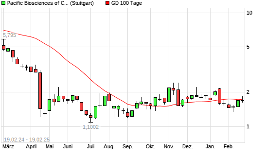 Mit dem Anstieg auf 1,88 EUR hat die Pacific Biosciences of California-Aktie am 18.02.2025 die 100-Tage-Linie nach oben gekreuzt.
