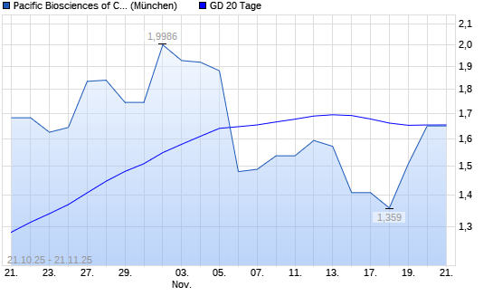 Mit dem Anstieg auf 1,62 EUR hat die Pacific Biosciences of California-Aktie am 20.11.2025 die 20-Tage-Linie nach oben gekreuzt.