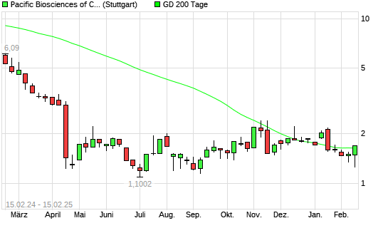 Mit dem Anstieg auf 1,72 EUR hat die Pacific Biosciences of California-Aktie am 14.02.2025 die 200-Tage-Linie nach oben gekreuzt.