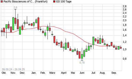 Mit dem Rücksetzer auf 1,04 EUR hat die Pacific Biosciences of California-Aktie am 25.09.2025 die 100-Tage-Linie nach unten gekreuzt.
