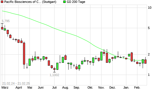 Mit dem Rücksetzer auf 1,52 EUR hat die Pacific Biosciences of California-Aktie am 20.02.2025 die 200-Tage-Linie nach unten gekreuzt.