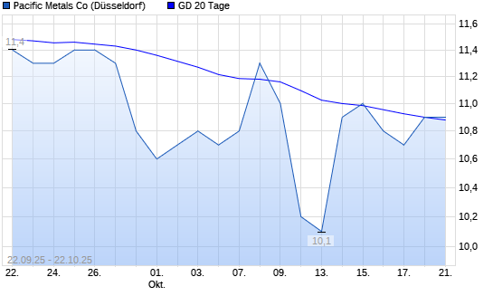 Mit dem Anstieg auf 11,00 EUR hat die Pacific Metals Co-Aktie am 21.10.2025 die 20-Tage-Linie nach oben gekreuzt.