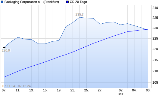 Mit dem Rücksetzer auf 229,00 EUR hat die Packaging Corp of America-Aktie am 06.12.2024 die 20-Tage-Linie nach unten gekreuzt.