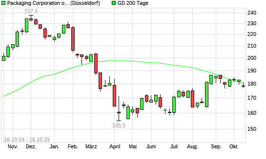 Mit dem Rücksetzer auf 179,20 EUR hat die Packaging Corp of America-Aktie am 15.10.2025 die 200-Tage-Linie nach unten gekreuzt.