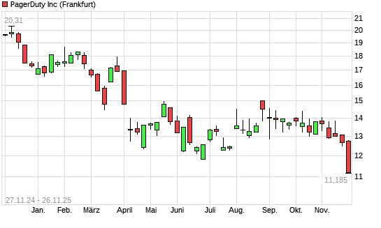 Mit dem Rücksetzer auf 11,19 EUR hat die PagerDuty-Aktie (ISIN US69553P1003) am 26.11.2025 ein neues All-Time-Low erreicht und damit den Kurs vom 23.06.2025 eingestellt.