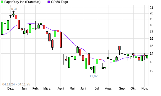 Mit dem Anstieg auf 13,80 EUR hat die PagerDuty-Aktie am 03.11.2025 die 50-Tage-Linie nach oben gekreuzt.Die PagerDuty-Aktie befindet sich seit dem 28.03.2025 im langfristigen Abwärtstrend und ...weiterlesen