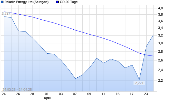 Mit dem Anstieg auf 2,82 EUR hat die Paladin Energy-Aktie am 23.04.2025 die 20-Tage-Linie nach oben gekreuzt.