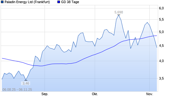 Mit dem Rücksetzer auf 4,75 EUR hat die Paladin Energy-Aktie am 05.11.2025 die 38-Tage-Linie nach unten gekreuzt.
