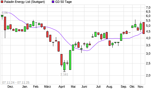 Mit dem Rücksetzer auf 4,44 EUR hat die Paladin Energy-Aktie am 06.11.2025 die 50-Tage-Linie nach unten gekreuzt.