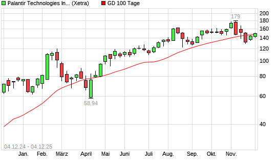 Mit dem Anstieg auf 150,76 EUR hat die Palantir Technologies-Aktie am 03.12.2025 die 100-Tage-Linie nach oben gekreuzt.