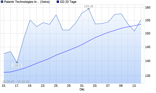 Mit dem Anstieg auf 154,68 EUR hat die Palantir Technologies-Aktie am 14.10.2025 die 20-Tage-Linie nach oben gekreuzt.