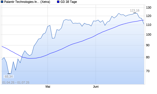 Mit dem Anstieg auf 114,96 EUR hat die Palantir Technologies-Aktie am 30.06.2025 die 38-Tage-Linie nach oben gekreuzt.