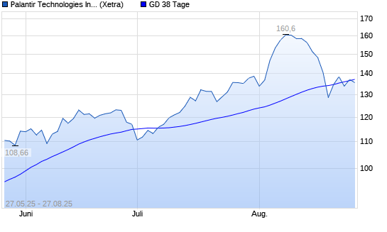 Mit dem Anstieg auf 138,24 EUR hat die Palantir Technologies-Aktie am 26.08.2025 die 38-Tage-Linie nach oben gekreuzt.