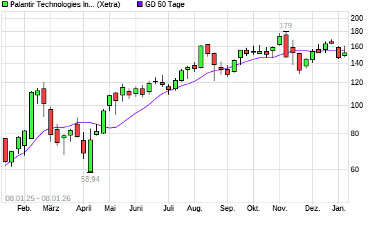 Mit dem Anstieg auf 157,22 EUR hat die Palantir Technologies-Aktie am 07.01.2026 die 50-Tage-Linie nach oben gekreuzt.