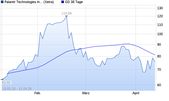 Mit dem Rücksetzer auf 79,06 EUR hat die Palantir Technologies-Aktie am 10.04.2025 die 38-Tage-Linie nach unten gekreuzt.