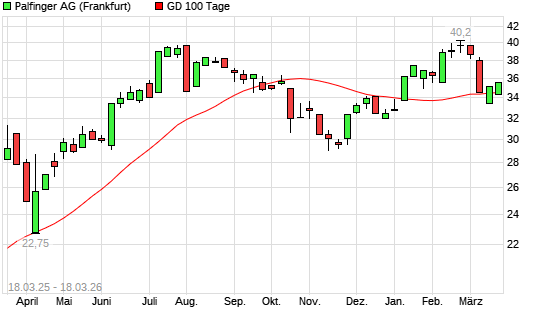Mit dem Anstieg auf 34,85 EUR hat die Palfinger-Aktie am 17.03.2026 die 100-Tage-Linie nach oben gekreuzt.