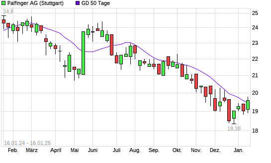 Mit dem Anstieg auf 19,60 EUR hat die Palfinger-Aktie am 15.01.2025 die 50-Tage-Linie nach oben gekreuzt.