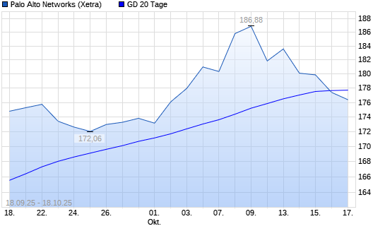 Mit dem Anstieg auf 178,02 EUR hat die Palo Alto Networks-Aktie am 17.10.2025 die 20-Tage-Linie nach oben gekreuzt.