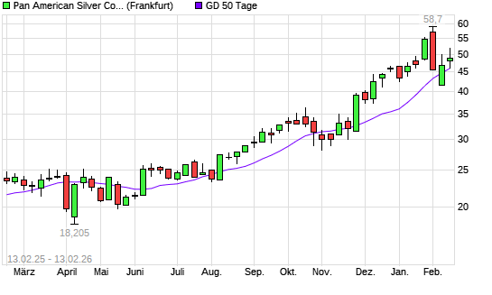 Mit dem Rücksetzer auf 46,16 EUR hat die Pan American Silver-Aktie am 12.02.2026 die 50-Tage-Linie nach unten gekreuzt.