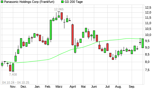 Mit dem Anstieg auf 9,70 EUR hat die Panasonic-Aktie am 03.10.2025 die 200-Tage-Linie nach oben gekreuzt.