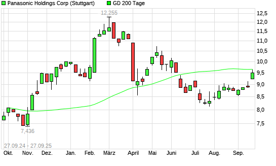 Mit dem Rücksetzer auf 9,38 EUR hat die Panasonic-Aktie am 26.09.2025 die 200-Tage-Linie nach unten gekreuzt.