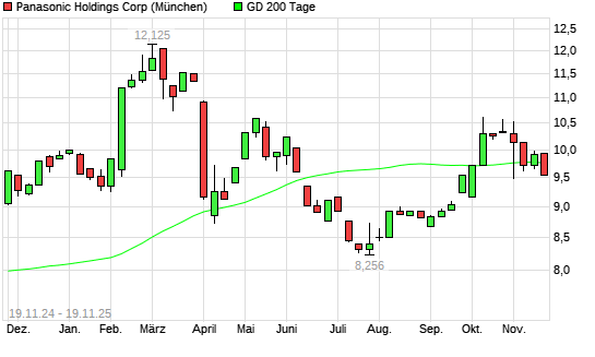 Mit dem Rücksetzer auf 9,55 EUR hat die Panasonic-Aktie am 18.11.2025 die 200-Tage-Linie nach unten gekreuzt.