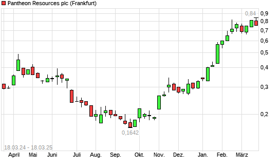 Mit dem Anstieg auf 0,84 EUR hat die Pantheon Resources-Aktie (ISIN GB00B125SX82) am 17.03.2025 ein neues 12-Monats-Hoch erreicht und damit den Kurs vom 14.03.2025 eingestellt.