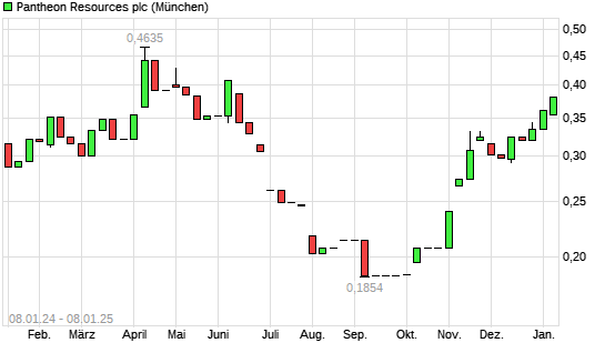 Mit dem Anstieg auf 0,37 EUR hat die Pantheon Resources-Aktie (ISIN GB00B125SX82) am 07.01.2025 ein neues 6-Monats-Hoch erreicht und damit den Kurs vom 30.12.2024 eingestellt.