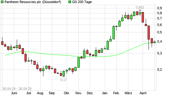 Mit dem Anstieg auf 0,39 EUR hat die Pantheon Resources-Aktie am 29.04.2025 die 200-Tage-Linie nach oben gekreuzt.