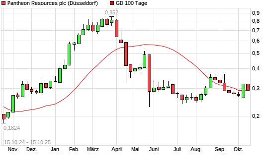 Mit dem Rücksetzer auf 0,28 EUR hat die Pantheon Resources-Aktie am 14.10.2025 die 100-Tage-Linie nach unten gekreuzt.